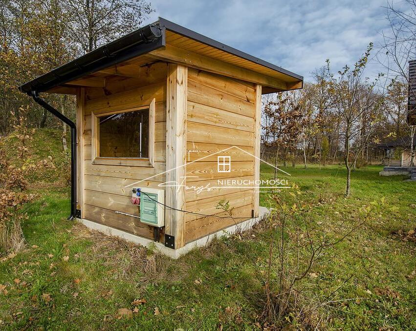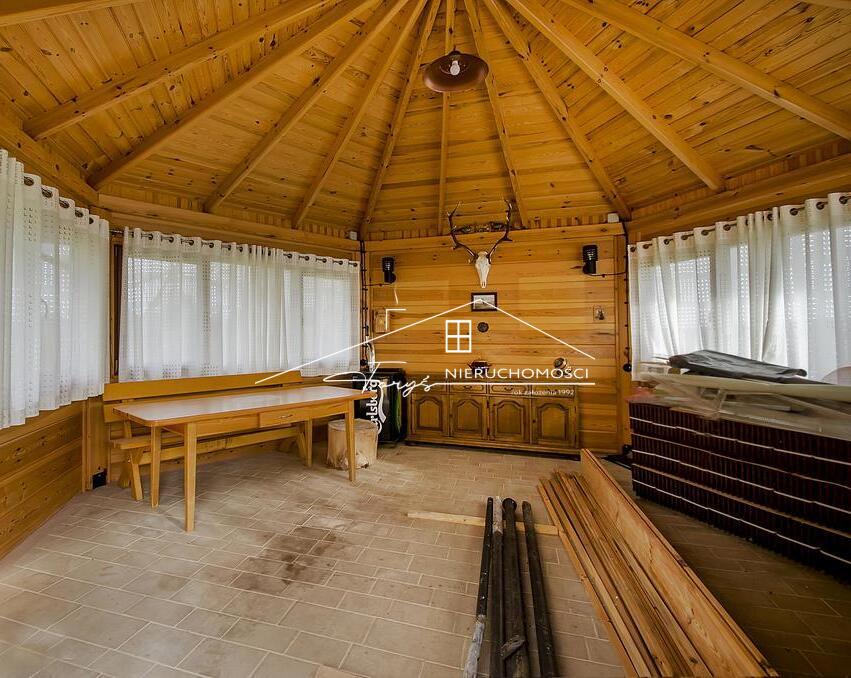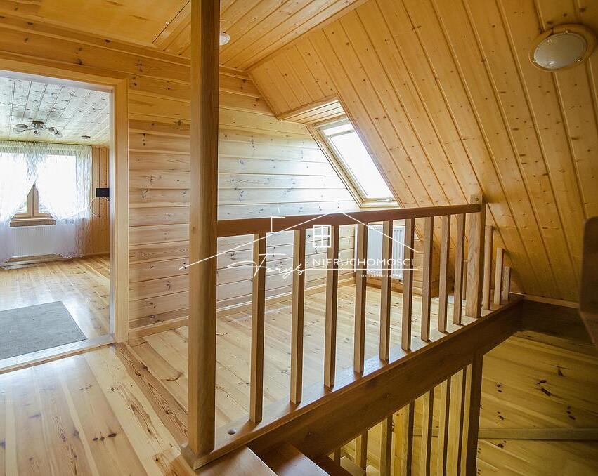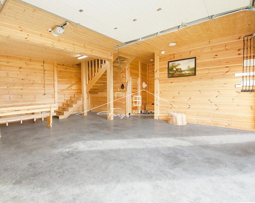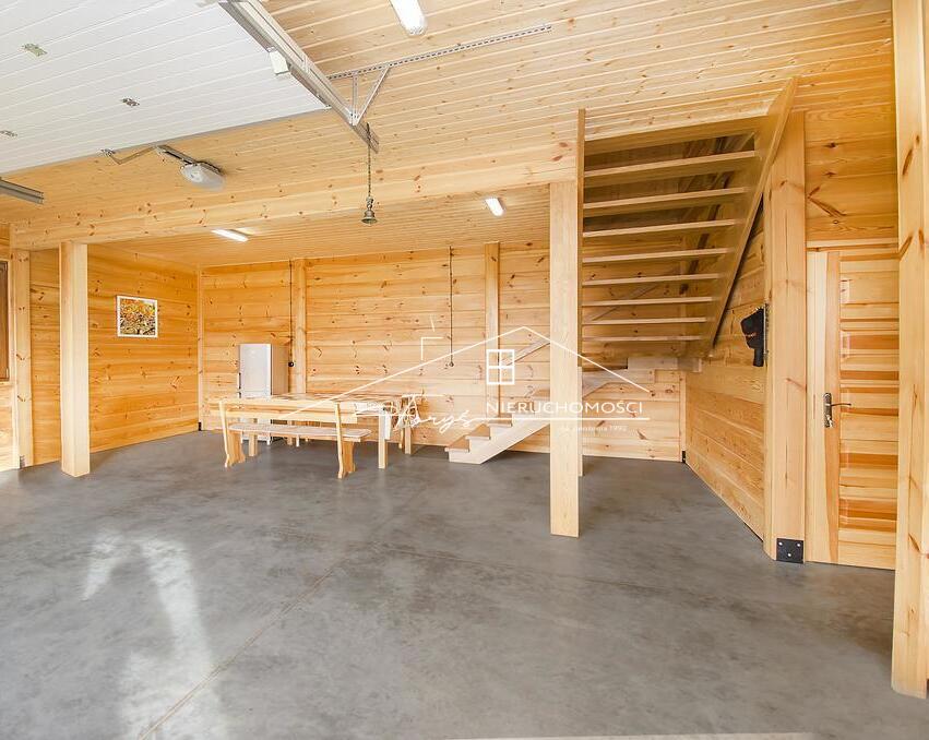 Budynek Parterowy o pow. 140 m2 konstrukcji szkieletowej drewnianej wybudowany w 2021r. ściany ocieplone wełną mineralną 20 cm. Posadowiony na płycie fundamentowej pokryty ceramiczną dachówka. Ściany zewnętrzne obite deską elewacyjną. Instalacja C.O + grzejniki ścienne zasilane z pieca elektrycznego. Stolarka okienna i drzwiowa marki Rota. Parter budynku to powierzchnia gospodarcza pełniąca funkcję garażu lub miejsca spotkań w gronie znajomych z kuchnią i stacją uzdatniania wody marki VIESSMAN AQUAHOME COMPACT. Dodatkowo podłogi na parterze wykończone są betonową posadzką przemysłową (niepylącą).Na poddaszu dla przyszłych klientów przygotowane są dwa przestronne pokoje i łazienka.