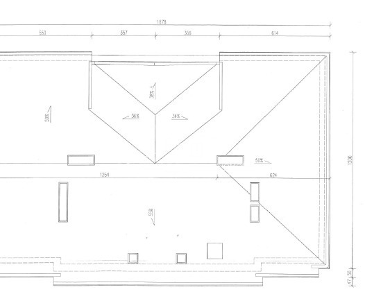 - Dach - wielospadowy o konstrukcji drewnianej, pokryty papą położoną w części na starym pokryciu z blachy, na deskowaniu ażurowym, obróbki blacharskie z blachy ocynkowanej, Klatka schodowa - schody o konstrukcji żelbetowej z okładzinami lastrykowymi, dwubiegowe, balustrady metalowe z pochwytem drewnianym, lamperie olejne.